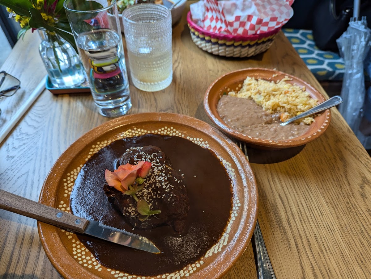 The enchiladas verdes are another highlight. The tomatillo sauce carries a bright tang, rounded out by crema and queso fresco. It’s comforting but not heavy. I’ve worked with chefs who emphasize acid balance as the backbone of Mexican cuisine, and this kitchen clearly understands that principle. Even the rice and beans, which can feel like an afterthought elsewhere, are flavorful and well-seasoned.